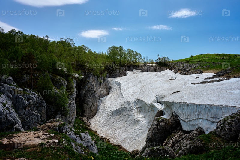 Карстовая воронка и снежное поле