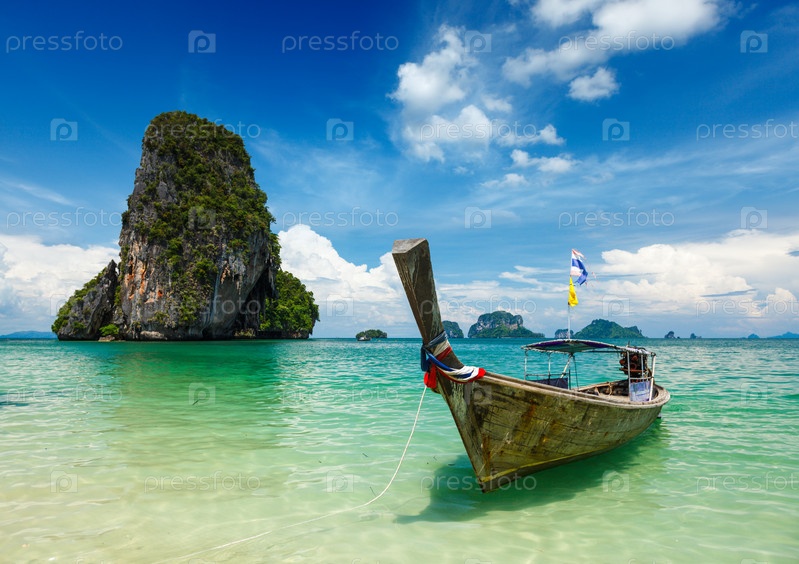 Лодка с длинным хвостом на пляже, Таиланд