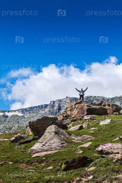 Счастливый турист в горах