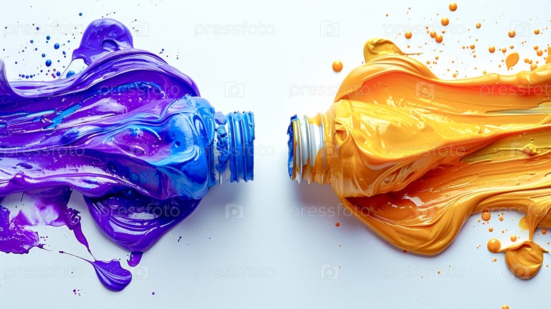 Слева — абстрактная трубка с сине-фиолетовыми мазками, слева — абстрактная трубка в виде мазка желтой краской на светлом сплошном фоне