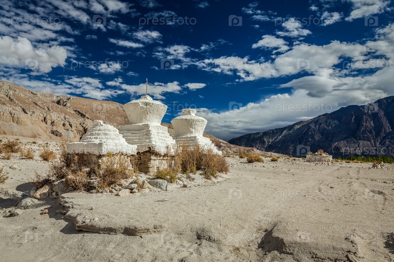 Чортены (ступы тибетского буддизма) в Гималаях Долина Нубра, L