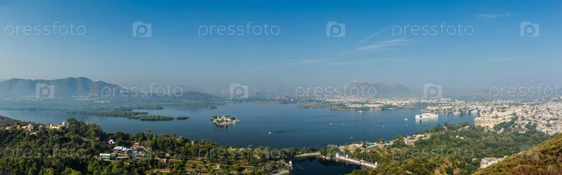 Аэрофотоснимок озера Пичола с Озерным дворцом (Джаг Нивас) и
