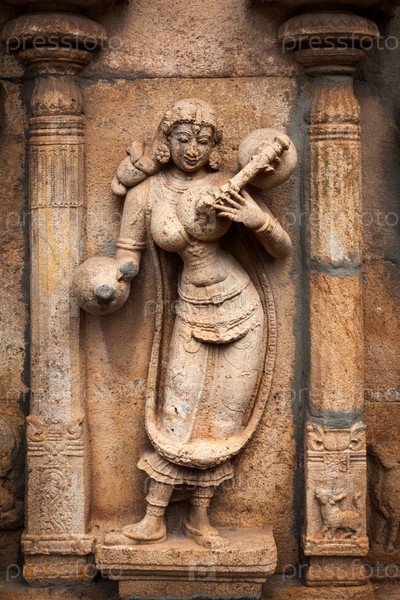 Музыкант играет на вине. Барельефы в индуистском храме. Храм Шри Ранганатхасвами. Тиручираппалли (Тричи), Тамил Наду, Индия