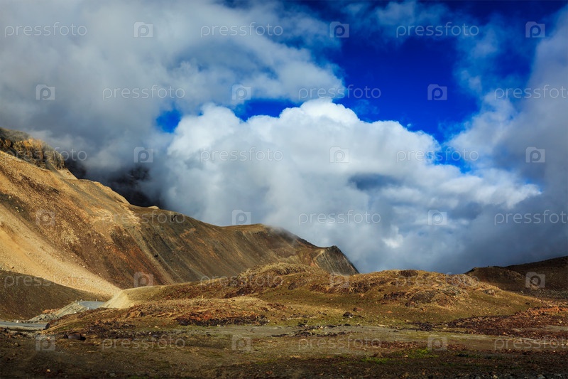 Гималайский пейзаж в Гималаях возле перевала Баралача-Ла. Химачал-Прадеш, Индия