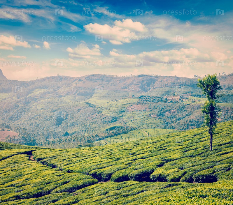 Плантации зеленого чая в Муннаре, Керала, Индия