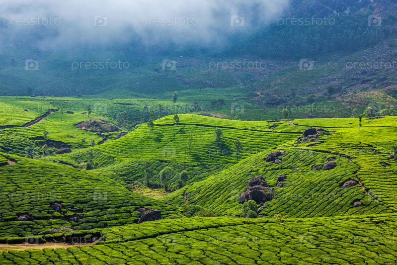 Керала Индия: плантации зеленого чая в Муннаре, Керала, Индия - туристическая достопримечательность