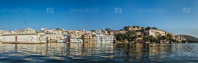 Предыстория концепции роскошного туризма Индии - панорама городского дворца Удайпура с озера Пичола. Удайпур, Индия