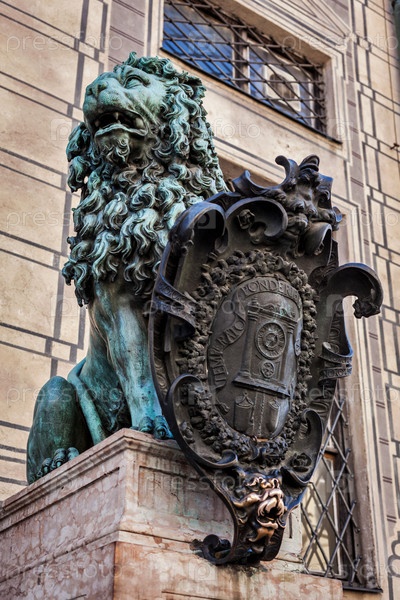 Статуя баварского льва в мюнхенском дворце Alte Residenz на Одеонплац