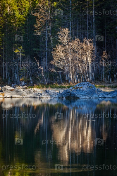 Лесные деревья на Фриллензее (небольшое озеро недалеко от Айбзее), Германия