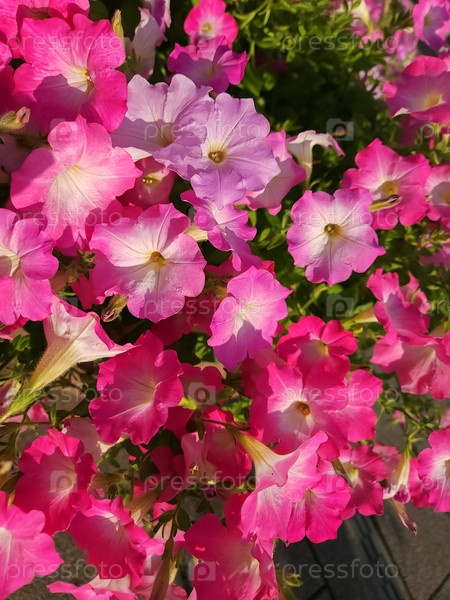 Розовые цветы петунии цветут в саду, цветочный фон петунии