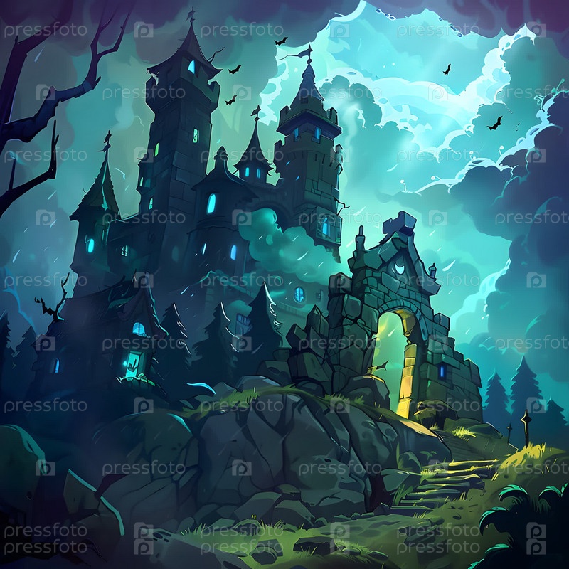 Художественная концепция картины дома с привидениями, фоновая 3d иллюстрация