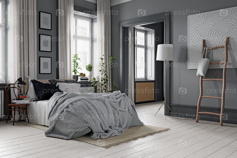 Современный уютный интерьер спален. 3D-рендеринг