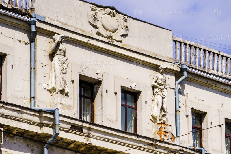 Скульптуры на здании кинотеатра "Пролетарий". Воронеж