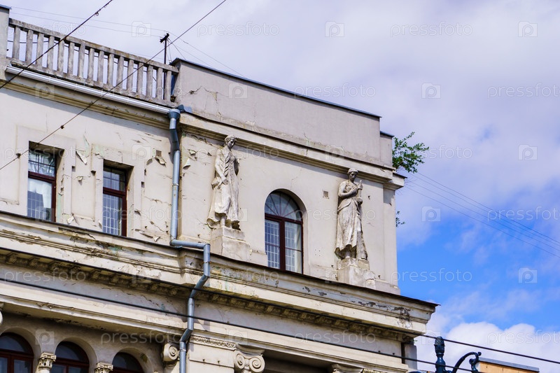 Скульптуры на здании кинотеатра "Пролетарий". Воронеж