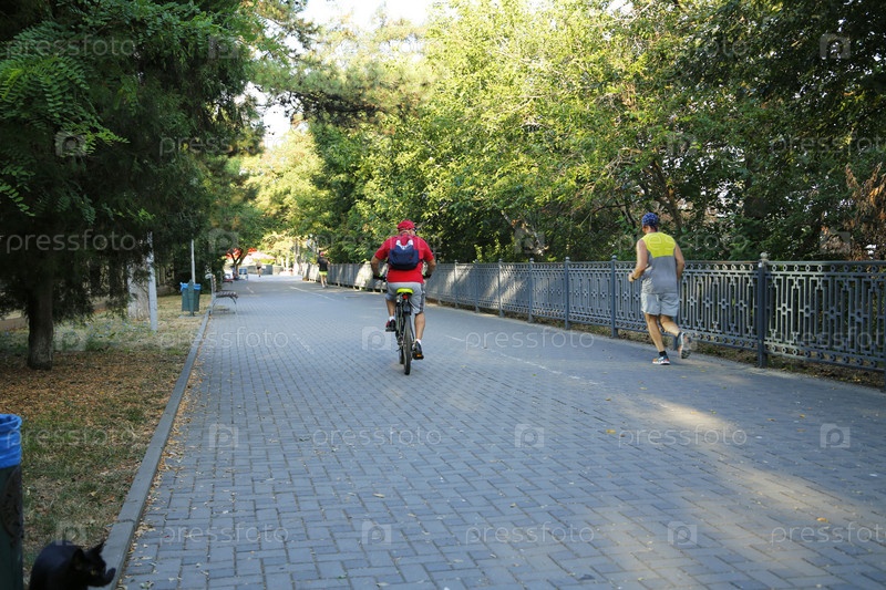 Туристы занимаются спортом,бег, катание на велосипеде