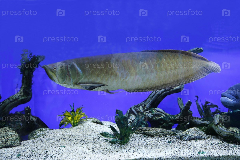 Пресноводная рыба аравана плавает в аквариуме.Рыба приносящая удачу и процветание по фен-шуй