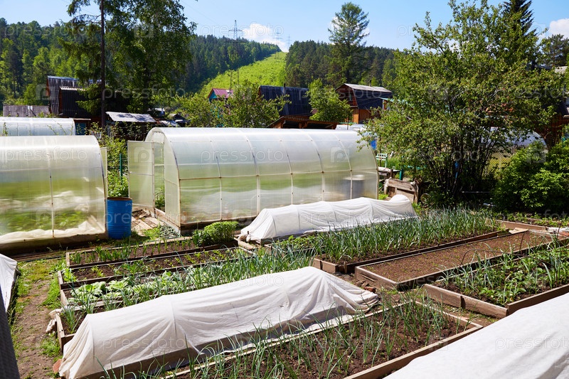 Органический огород: теплицы и грядки с различными овощами