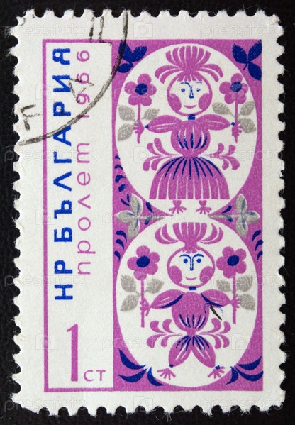 Почтовая марка с гашением Болгария 1966 год. Мартеница - украшение, амулет из шерсти или ниток. Символ здоровья и счастья