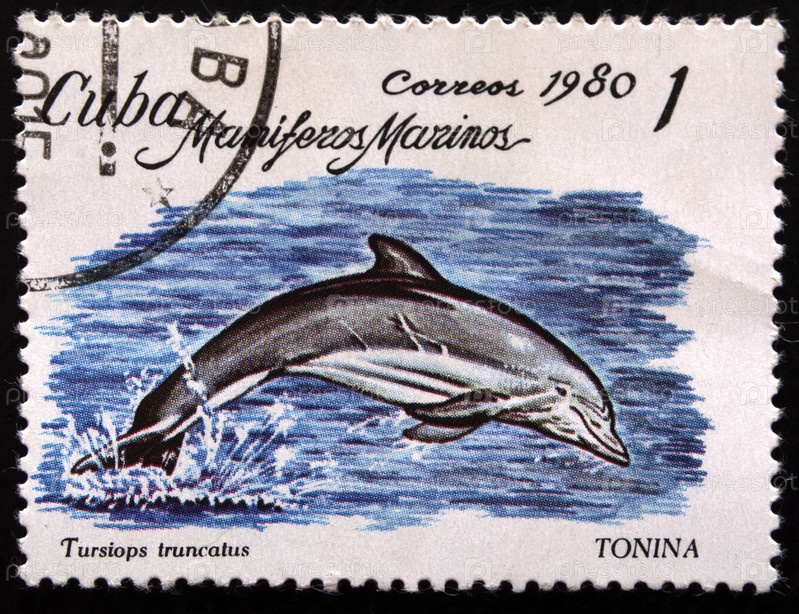 Кубинская почтовая марка с отметкой 1980 года.Обыкновенная афалина (Tursiops truncatus)