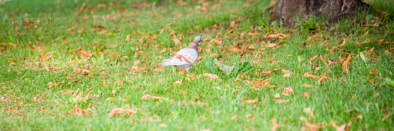 Голубь на зеленой траве в парке