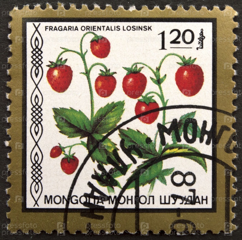Почтовая марка с отметкой Монголия 1987 г. Восточная земляника (Fragaria orientalis)