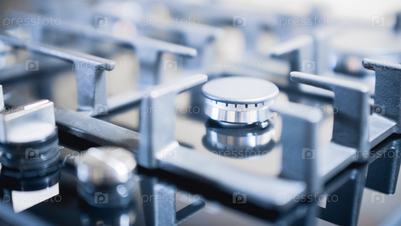 Кухонная газовая плита со стеклянной столешницей крупным планом