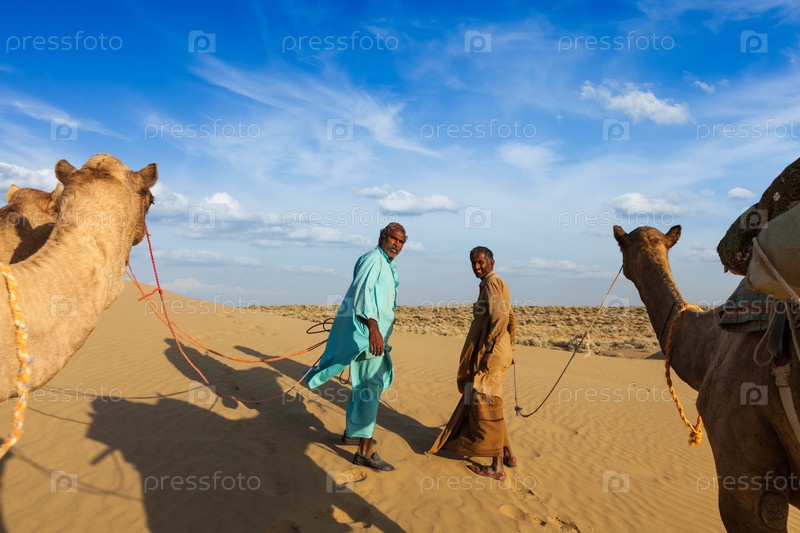 Два погонщика (погонщики верблюдов) с верблюдами в дюнах Тар-Дезера