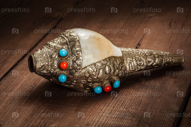 Тибетский буддийский рог из ракушки Дунг-Дкар