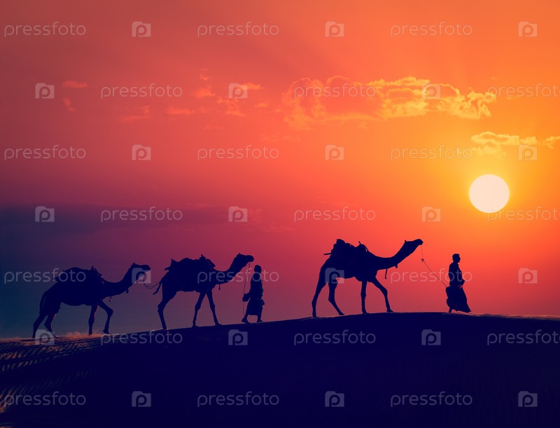 Два погонщика с верблюдами в дюнах Тар-Дезера