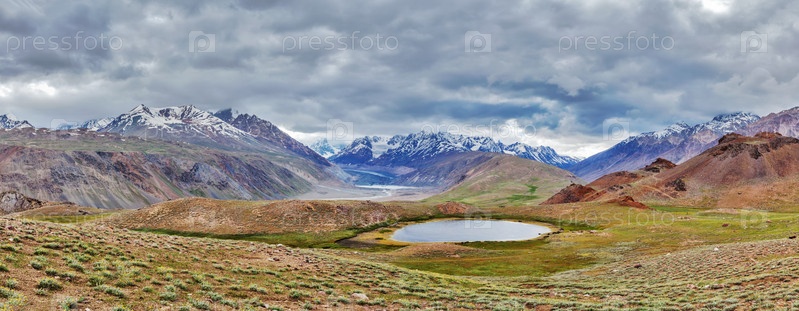Панорама гималайского пейзажа в долине Спити, Химачал-Прадеш, Индия