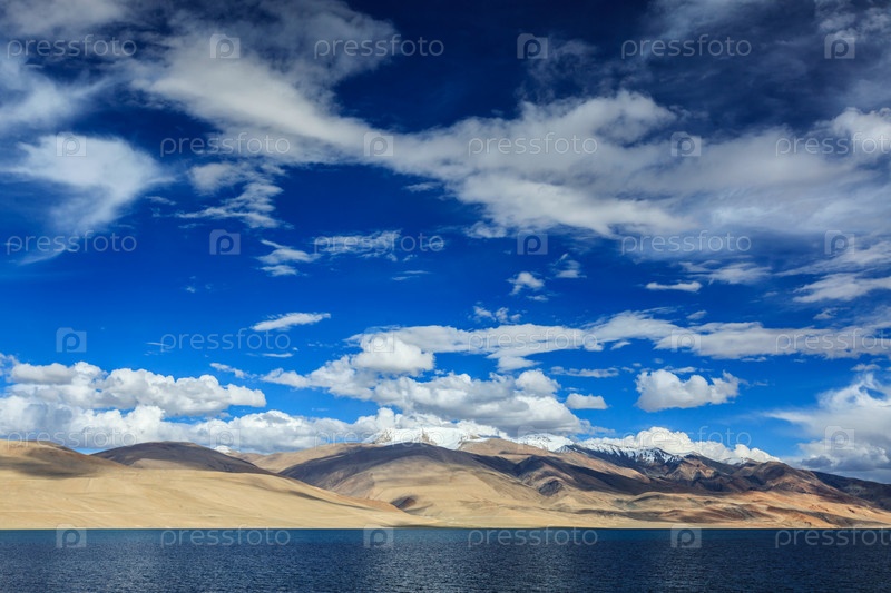 Гималайское горное озеро в Гималаях Цо Морири (официальное название: Заповедник водно-болотных угодий Цоморири), Корзок, район Чангтанг, Ладакх, Джамму и Кашмир, Индия