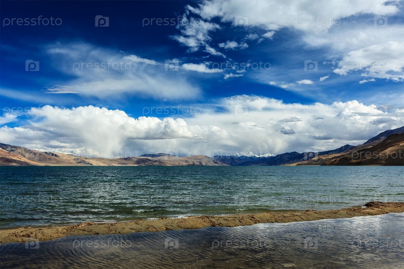 Гималайское горное озеро в Гималаях Цо Морири (официальное название: Заповедник водно-болотных угодий Цоморири), Корзок, район Чангтанг, Ладакх, Джамму и Кашмир, Индия