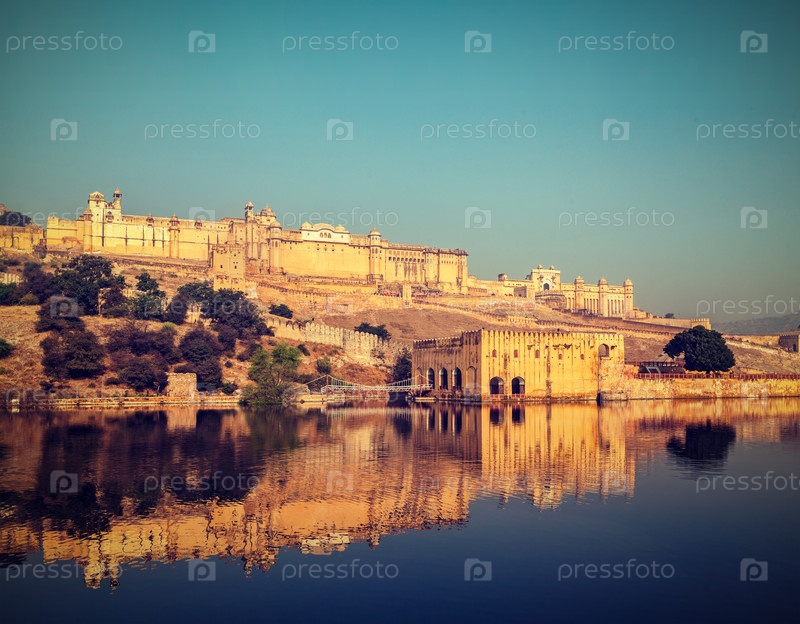 Винтажное ретро-хипстерское изображение знаменитой достопримечательности Раджастана - форта Амер (Янтарь), Раджастан, Индия