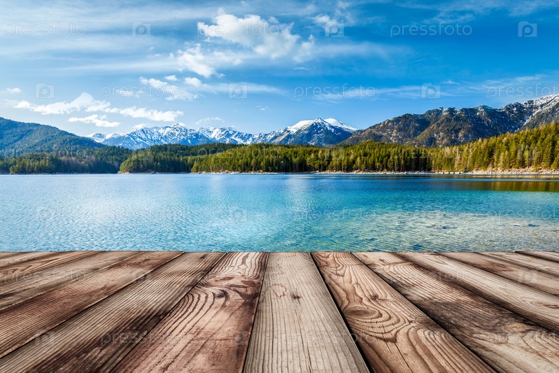 Деревянные доски Европейский природный фон с озером в Альпах, Германия