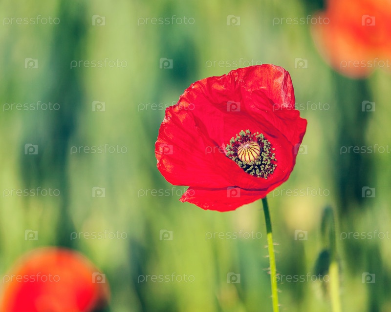 Красный мак в поле