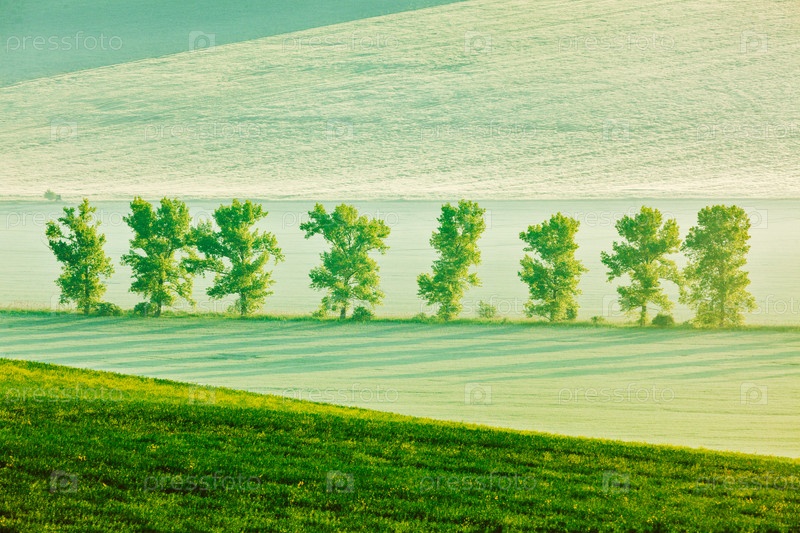 Моравский холмистый пейзаж ранним утром