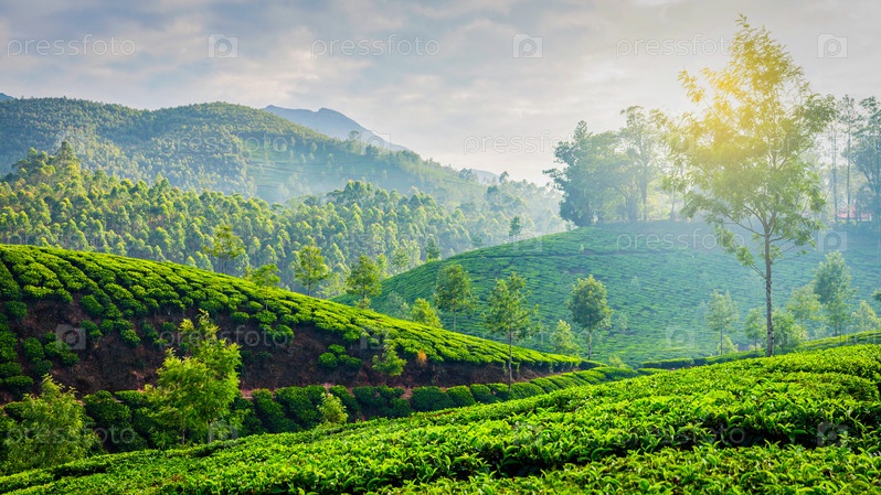Плантации зеленого чая в Муннаре, Керала, Индия
