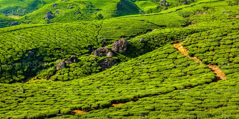Плантации зеленого чая в Муннаре, Керала, Индия