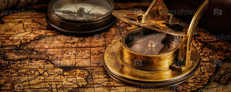 Старый винтажный компас на древней карте