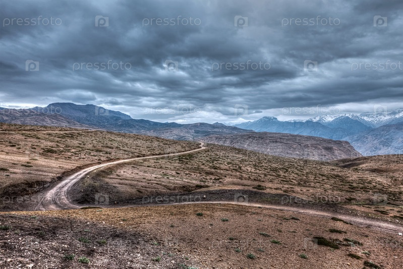 HDR-изображение дороги в Гималаях с высоким динамическим диапазоном. долина Спити, Химачал-Прадеш, Индия