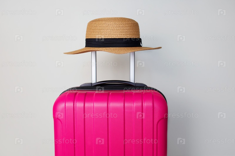 Розовый чемодан и соломенная шляпа. Летнее путешествие, подготовка к поездке