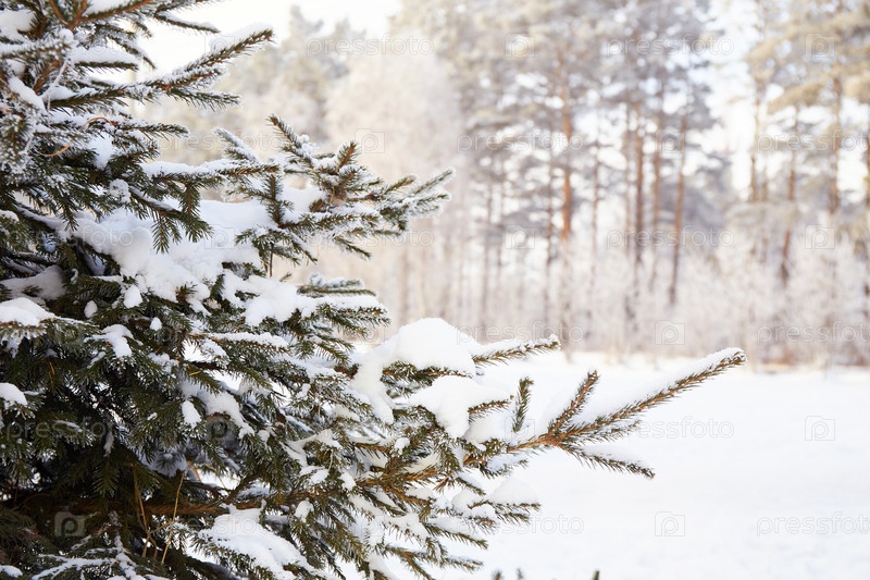 Красивый зимний пейзаж с заснеженной елью