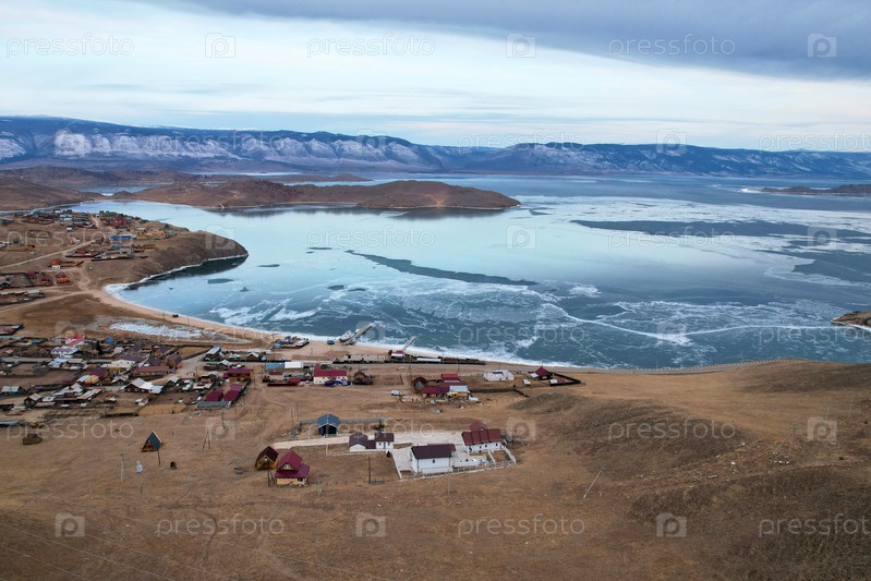 Поселок Сахюрта на берегу Байкала с воздуха