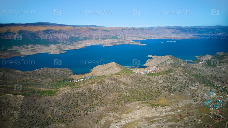 Озеро Байкал летом. Вид с воздуха на побережье Малого моря