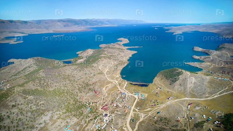 Озеро Байкал летом с воздуха. Вид на побережье и заливы