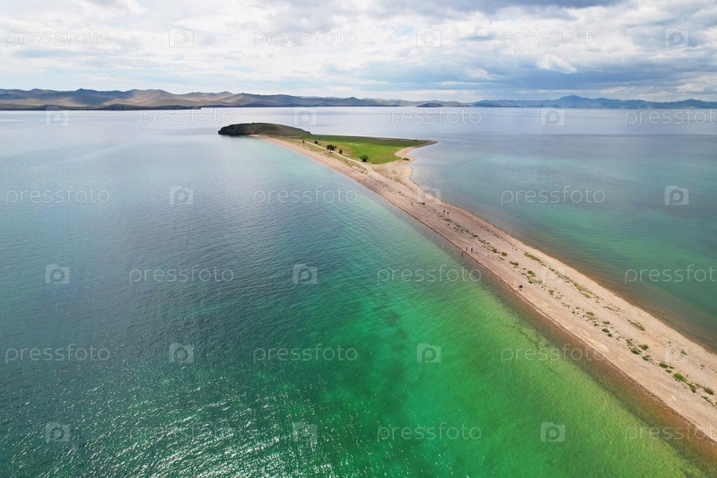 Озеро Байкал с воздуха. Вид на залив возле села Курма