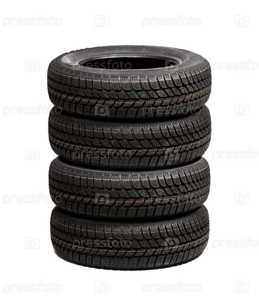 Комплект зимних автомобильных шин изолирован на белом фоне