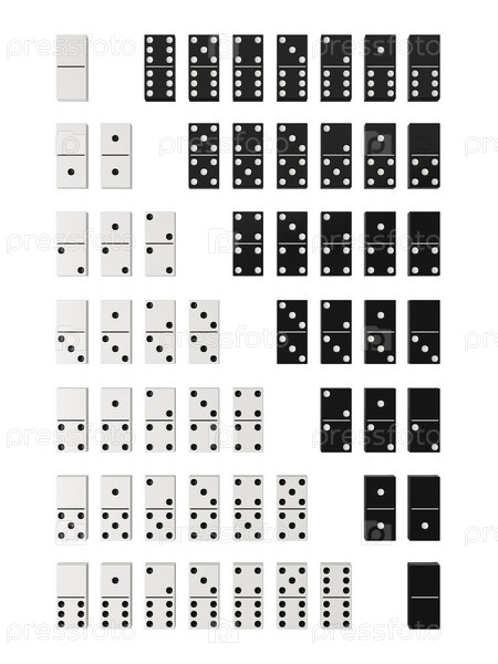 Домино устанавливает черно-белые изолированные на белом фоне