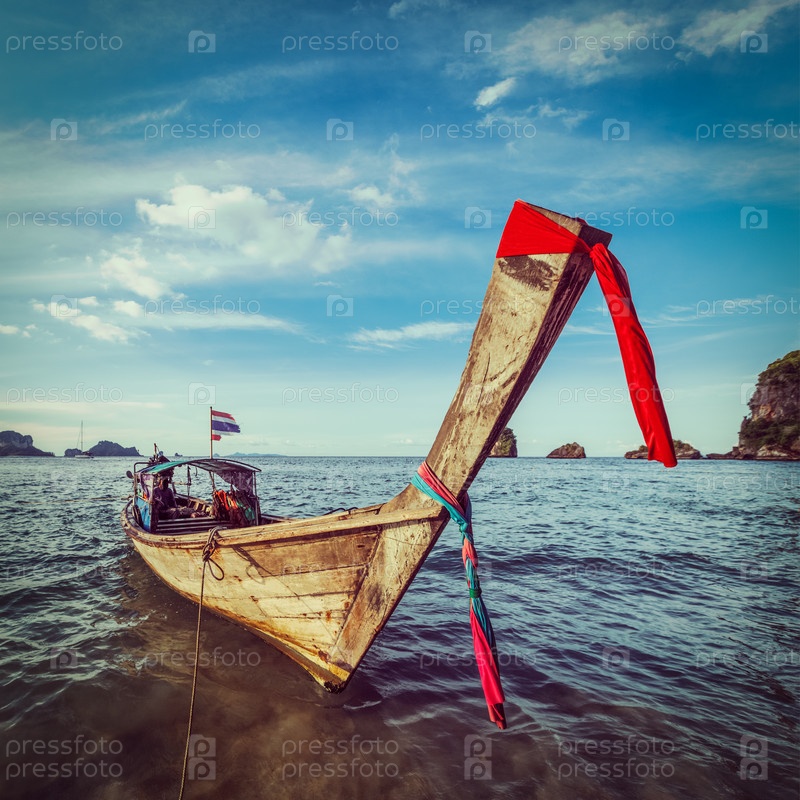 Лодка с длинным хвостом на пляже, Таиланд
