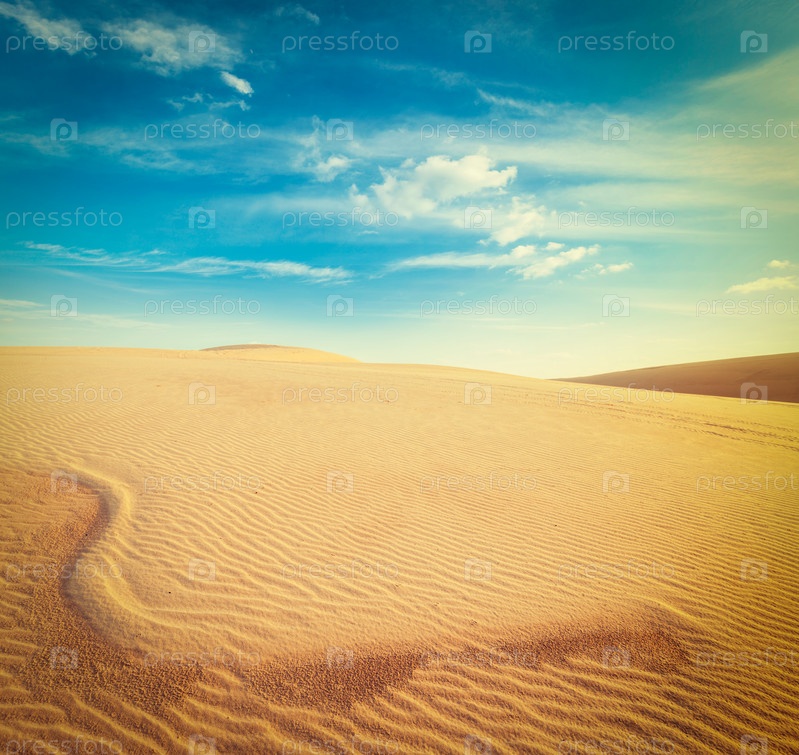 Винтажное ретро-хипстерское изображение путешествия по белым песчаным дюнам на рассвете, Муйне, Вьетнам